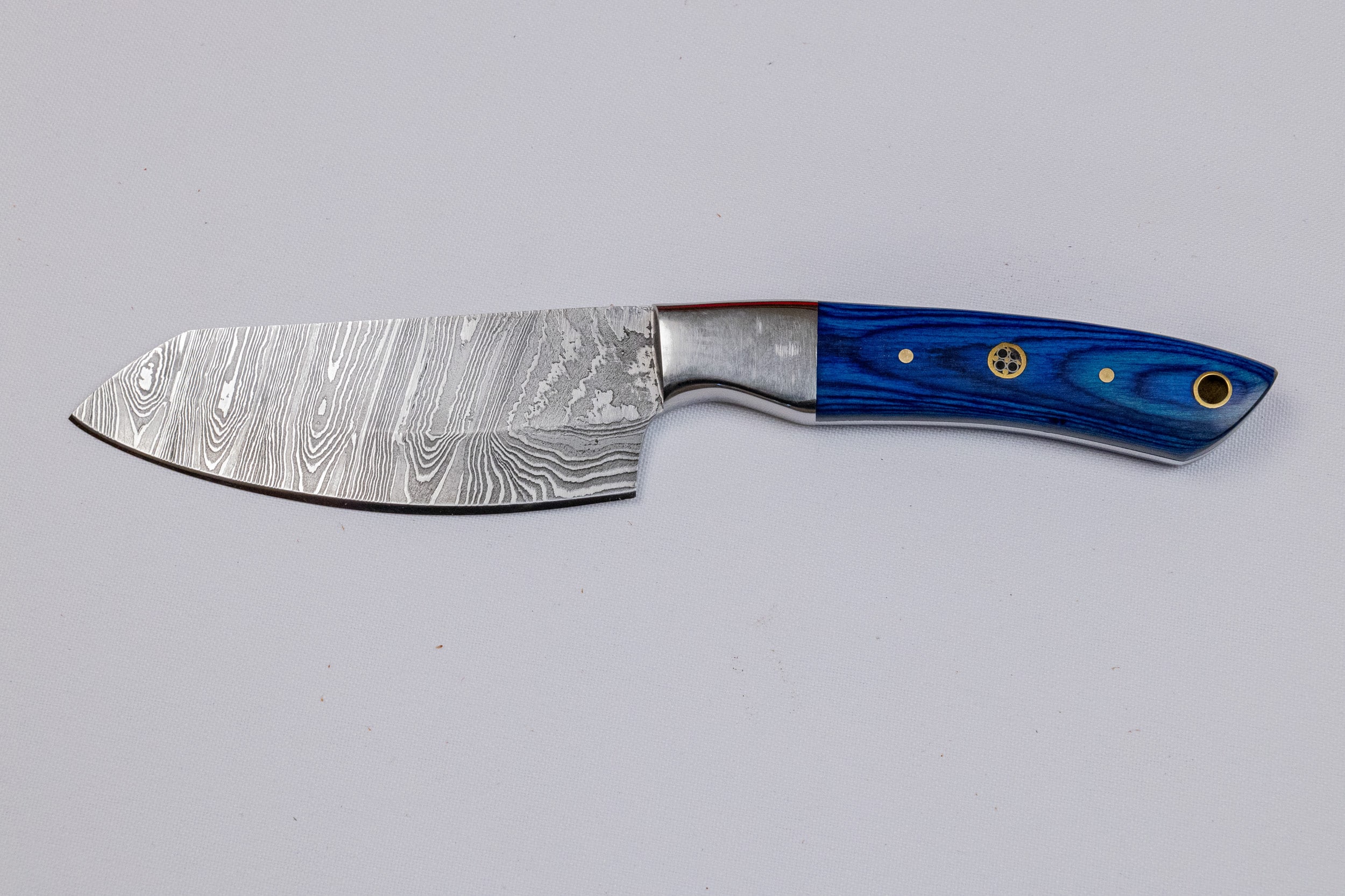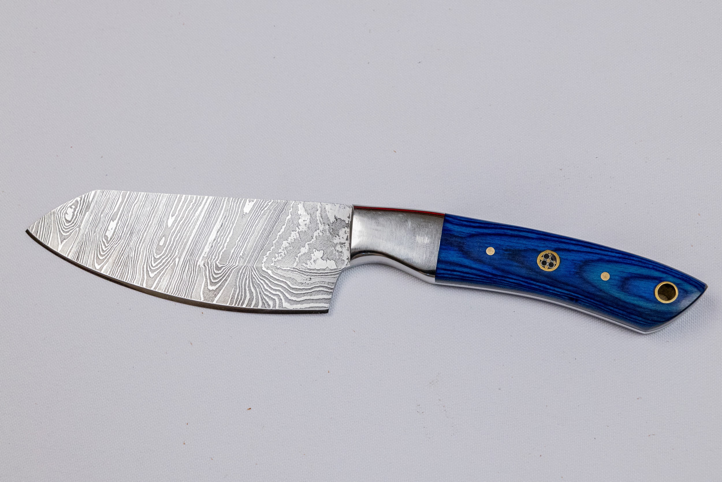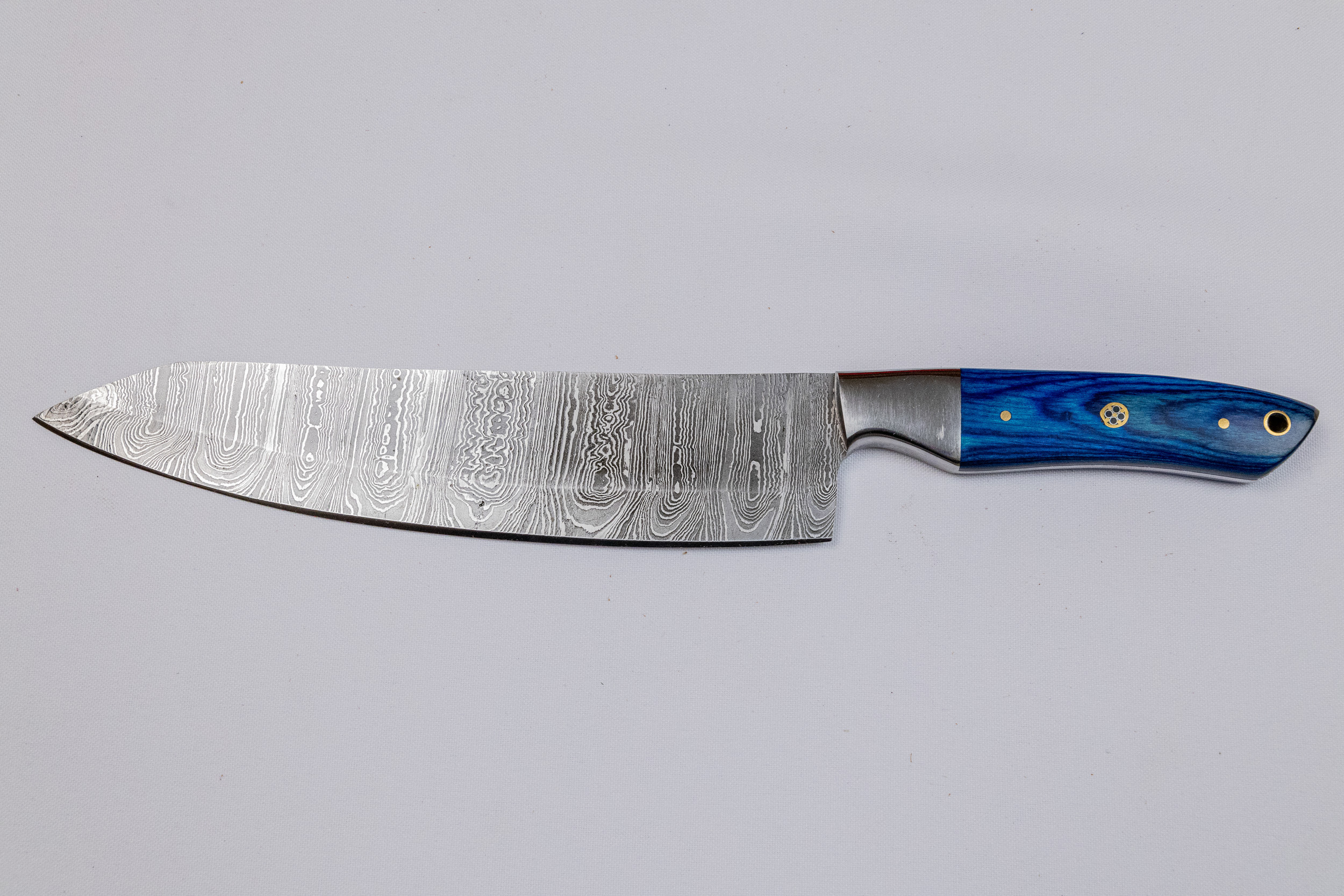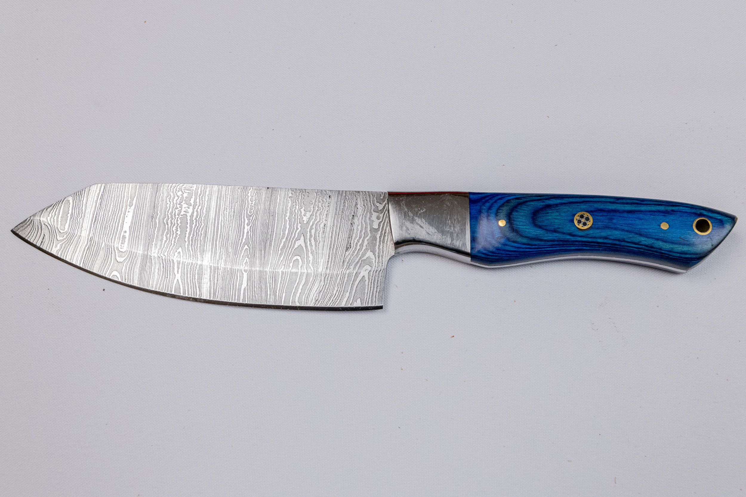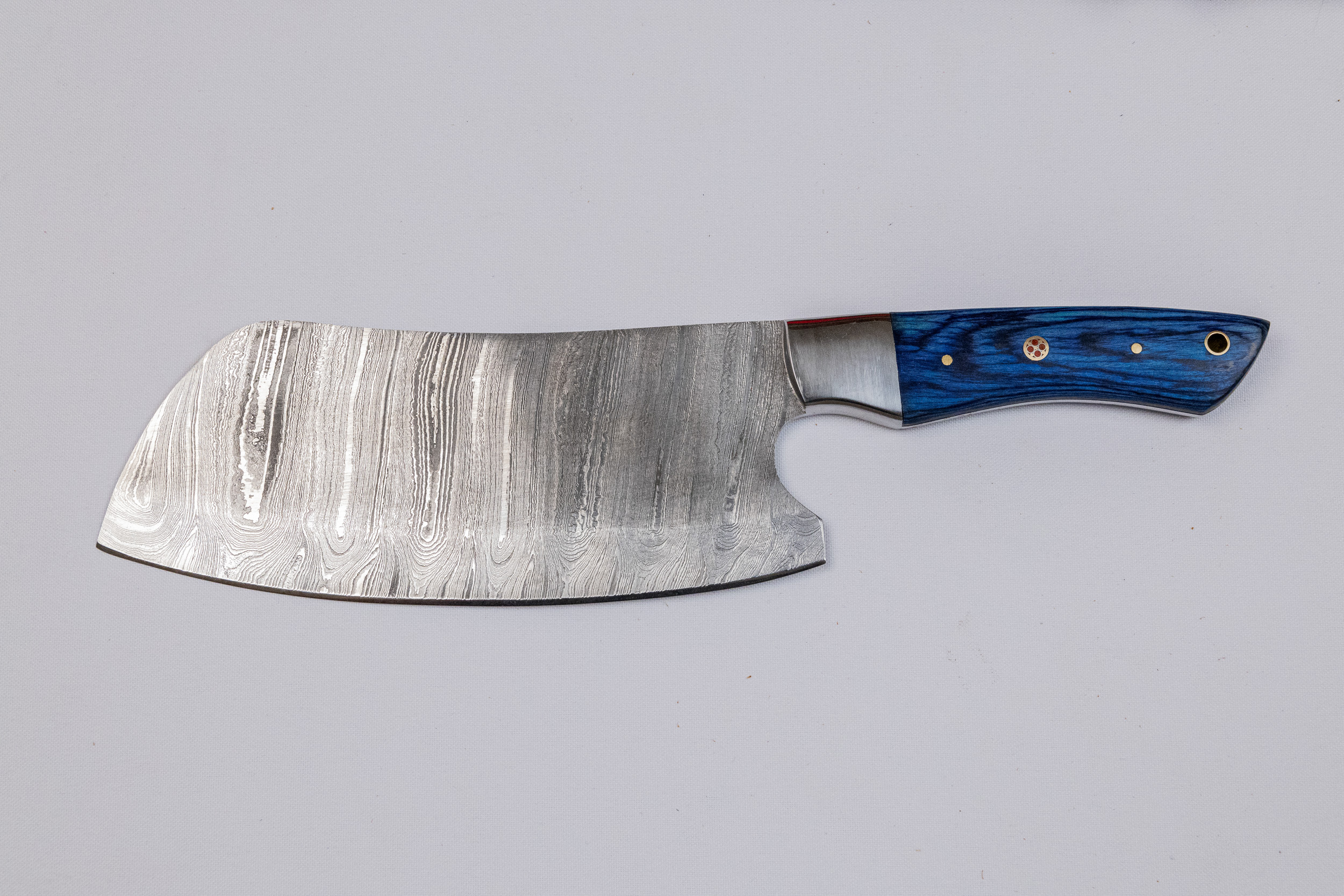 This Handmade Damascus Steel Five-Piece Chef Knife Set features a carbon steel bolster and Pakka wood handles, available in multiple colors. It comes in a stylish wooden box or an optional leather case for added convenience.